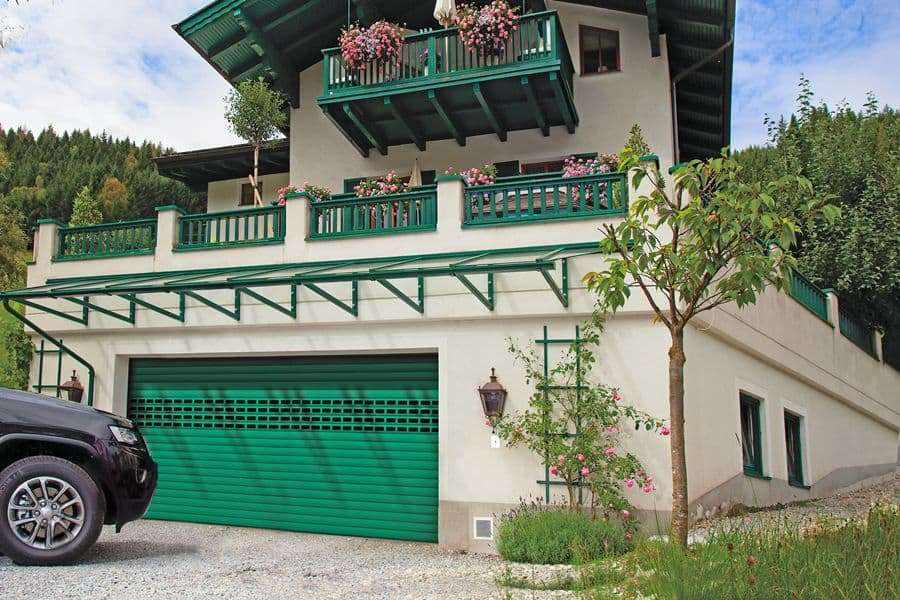 роллетные ворота подбираются с учетом оформления экстерьера